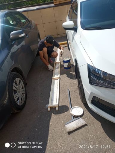 Сегодня много новостей пришло от службы клининга в микрорайоне Райцентр: на фото процесс нанесения разметки для автотранспорта на территории дома 3а по ул. Лесной и окашивания травы на «старом» фонде.