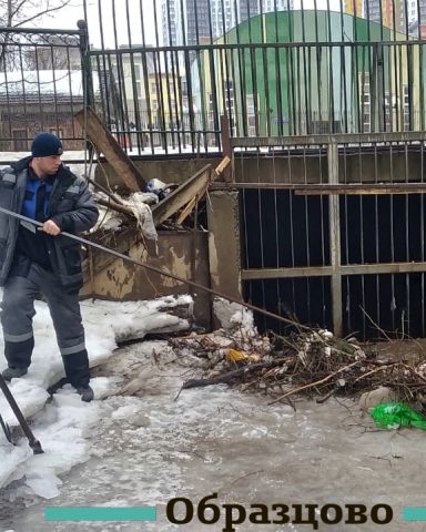 Служба клининга Группы компаний “ОБРАЗЦОВО” помогают коммунальным службам городского округа Красногорск с чисткой русла реки Банька от заторов и донных отложений перед началом паводка.