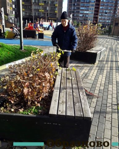 Служба клининга Группы компаний “ОБРАЗЦОВО” продолжает подготовку зеленых насаждений, высаженных на территории обслуживаемых объектов, к зимовке.