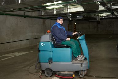 Паркинг жилого комплекса "Молодежный" убирается ежедневно специалистами службы клининга Группы компаний "ОБРАЗЦОВО". При уборке активно используется собственная техника.