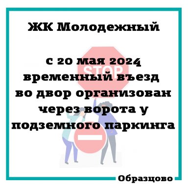 Уважаемые жители ЖК Молодежный! Сообщаем вам о временных изменениях в доступе на территорию жилого комплекса для транспортных средств.