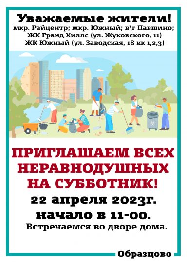 22 апреля 2023 года. Встречаемся во дворе дома в 11-00! мкр. Райцентр; мкр. Южный; в\г Павшино;
