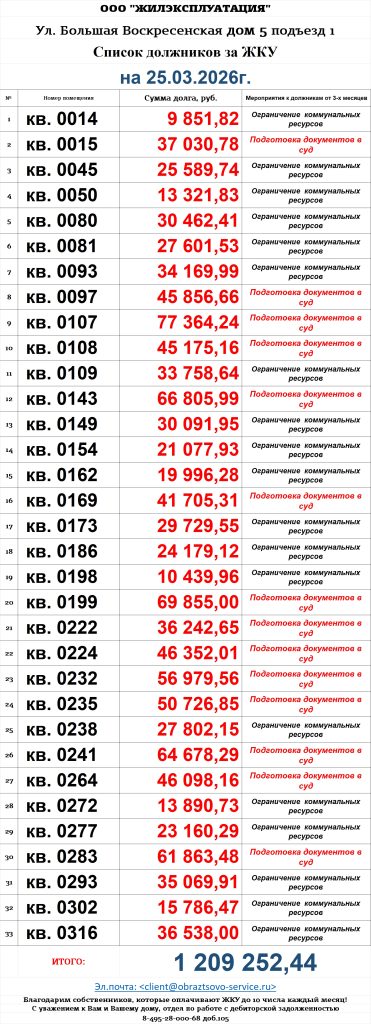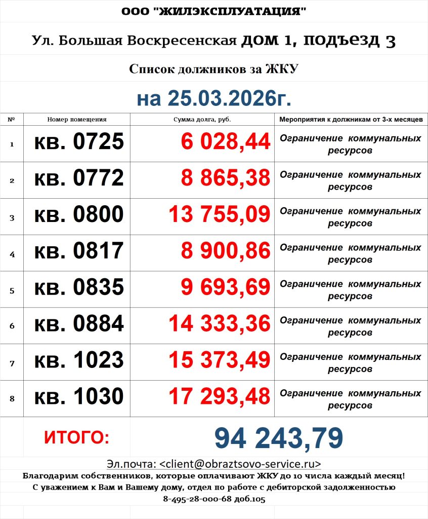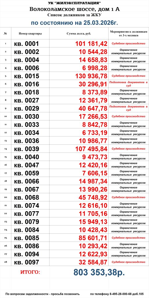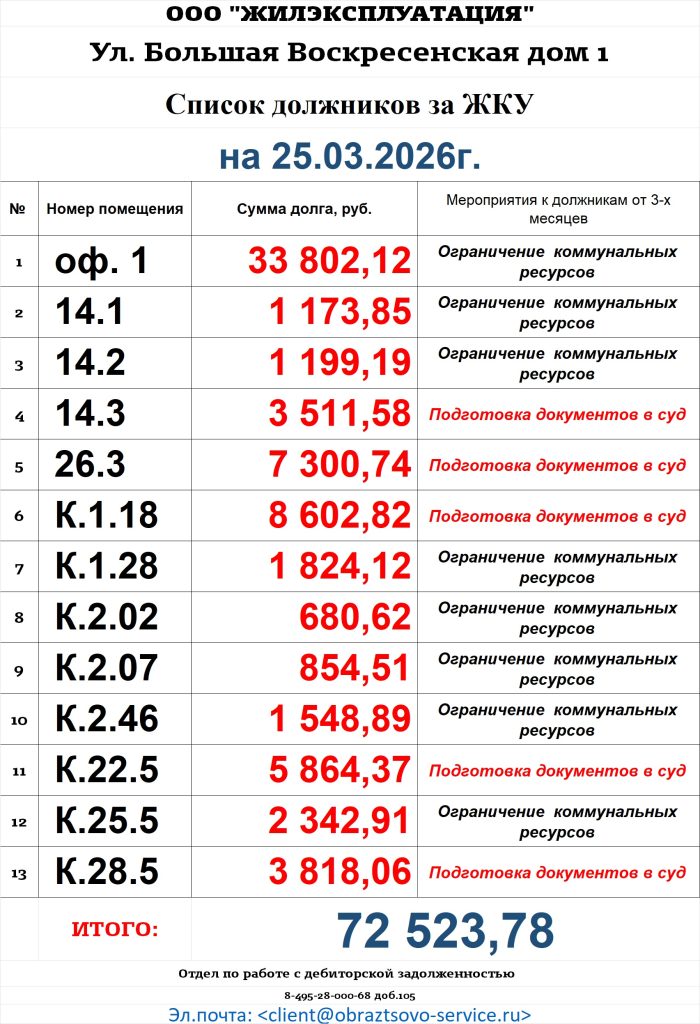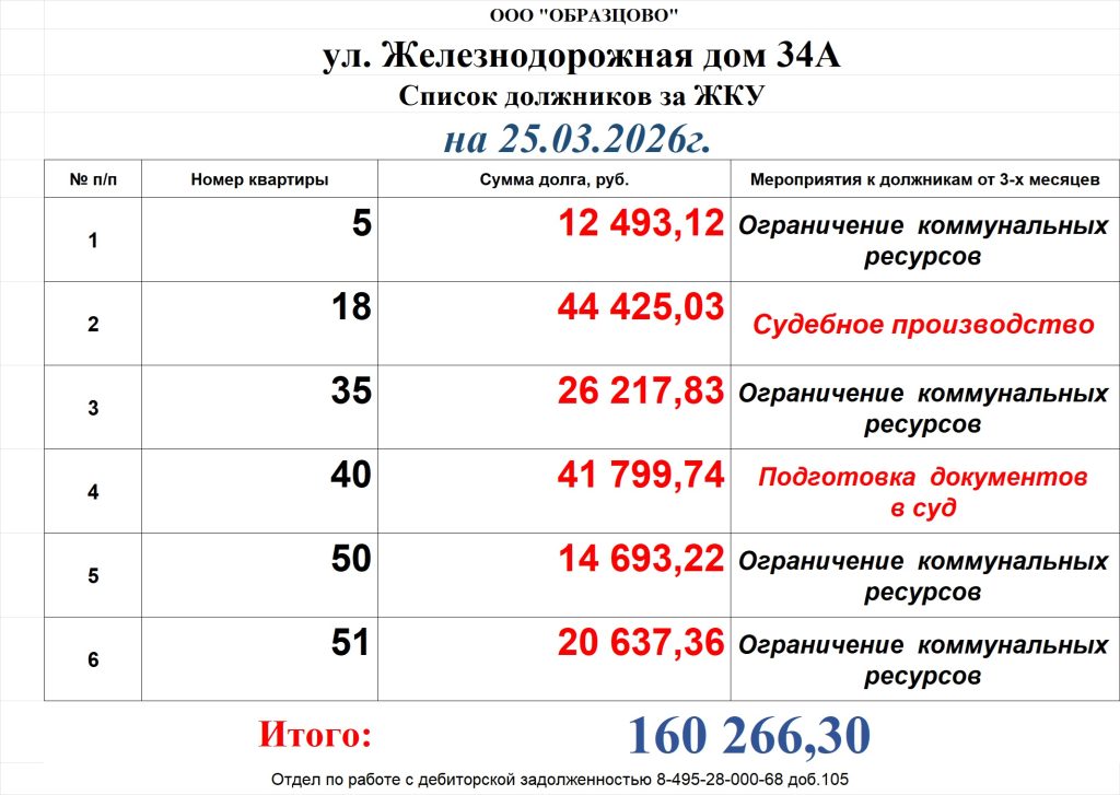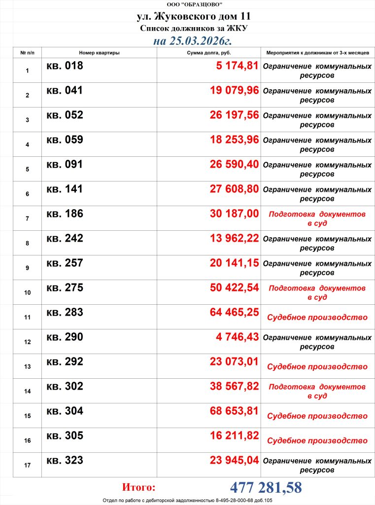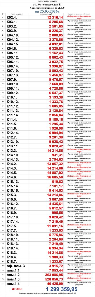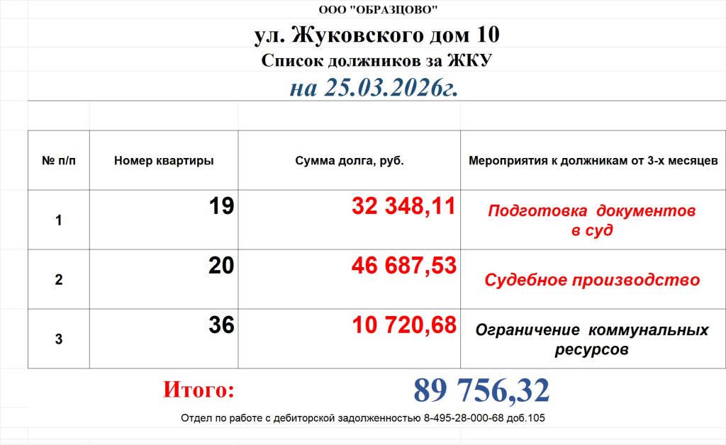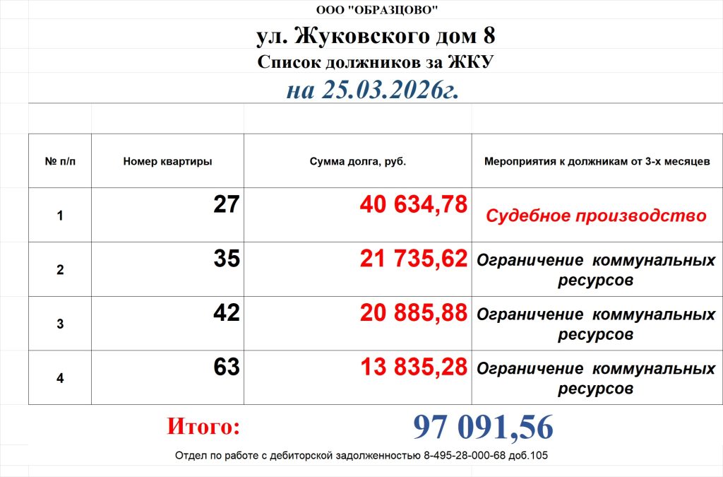 Список должников по коммунальным платежам ул. Жуковского, Волоколамское шоссе