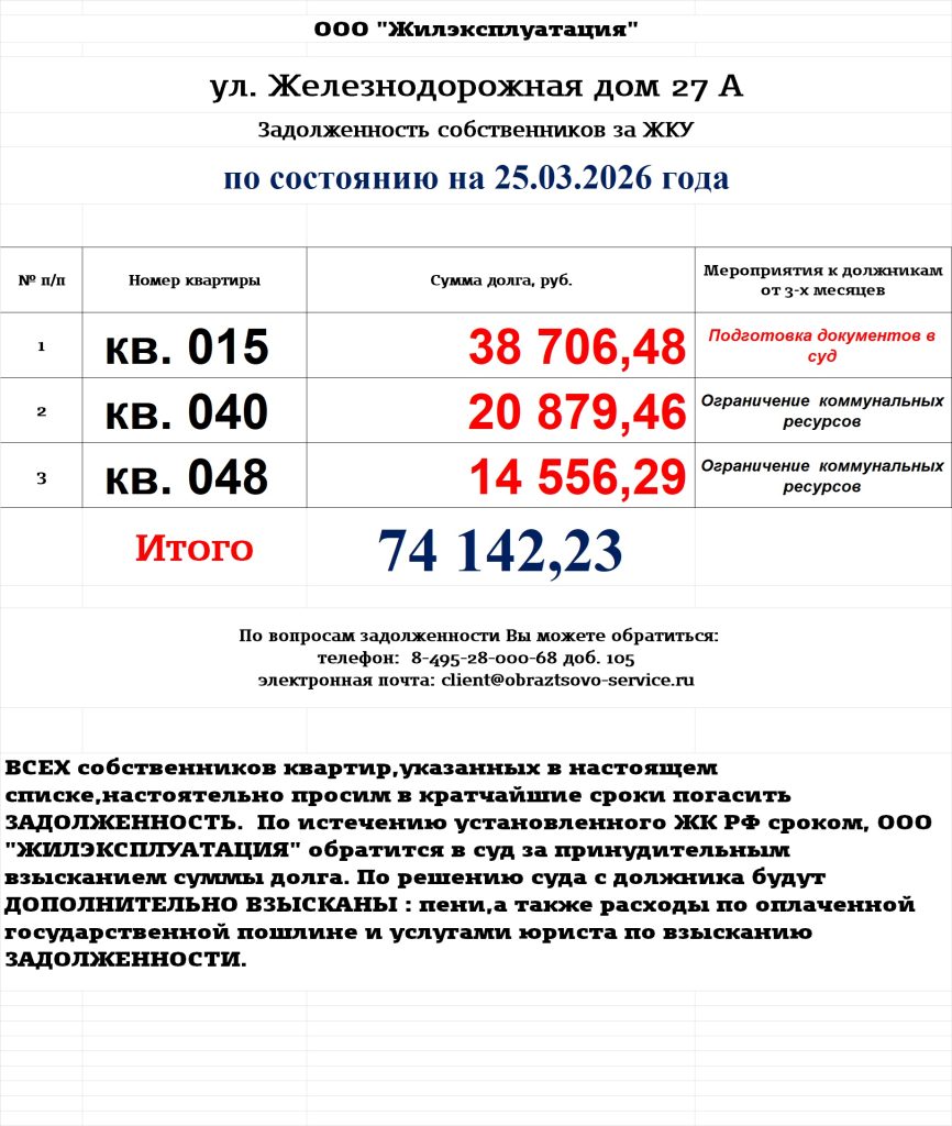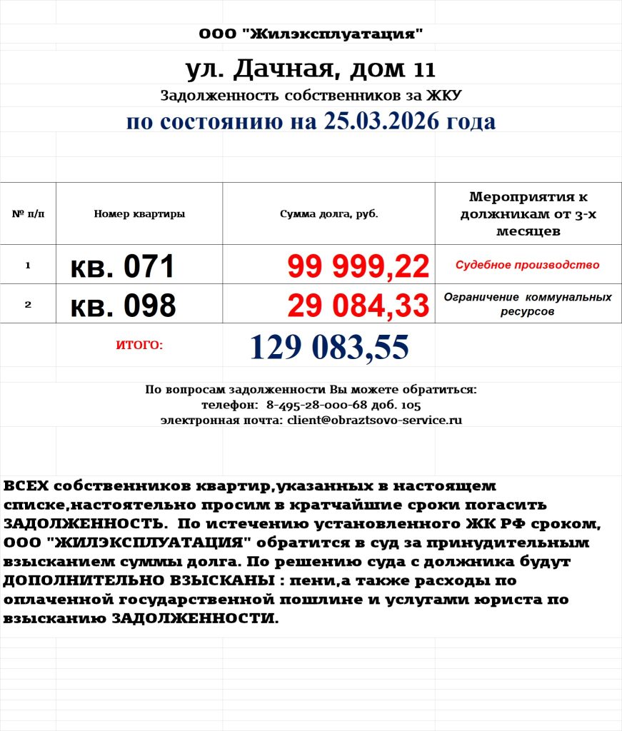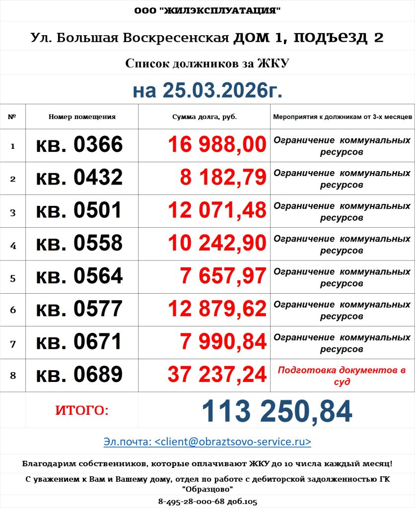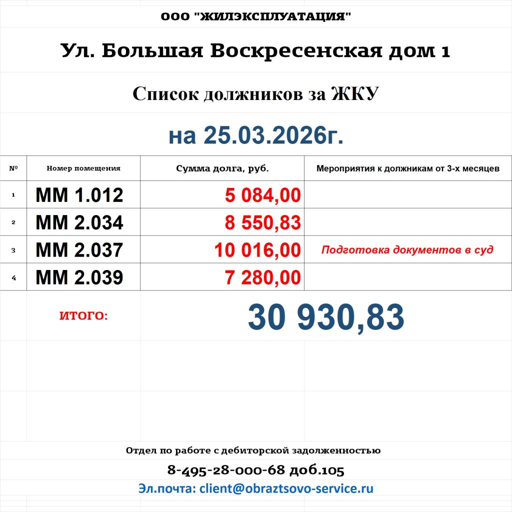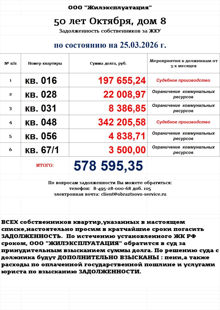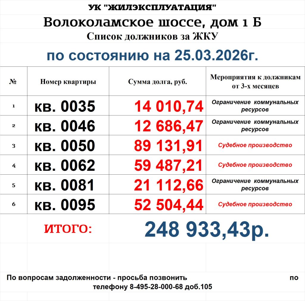 Список должников по коммунальным платежам ул. Жуковского, Волоколамское шоссе