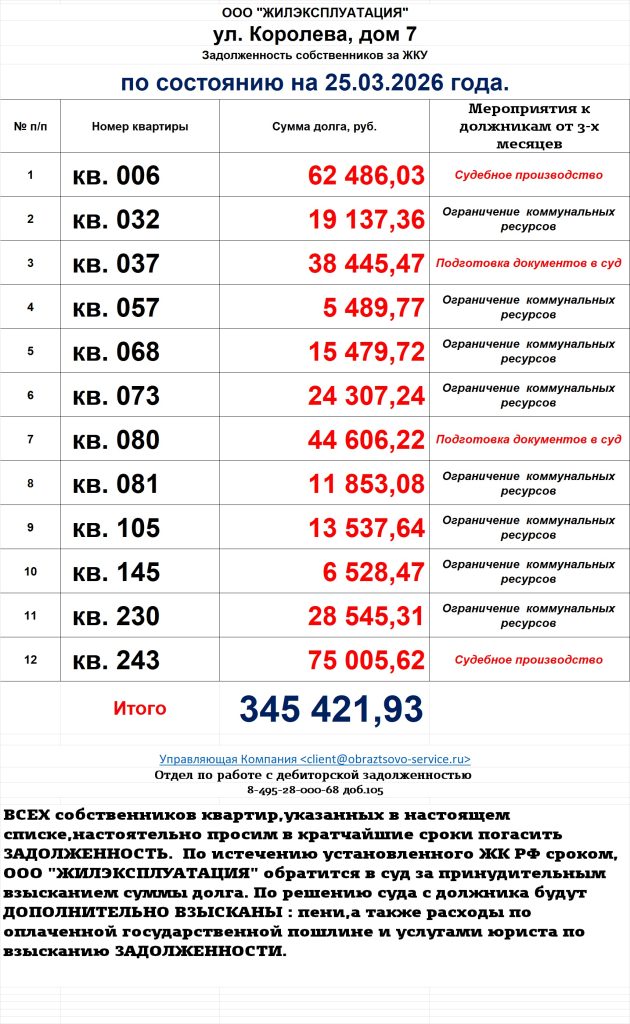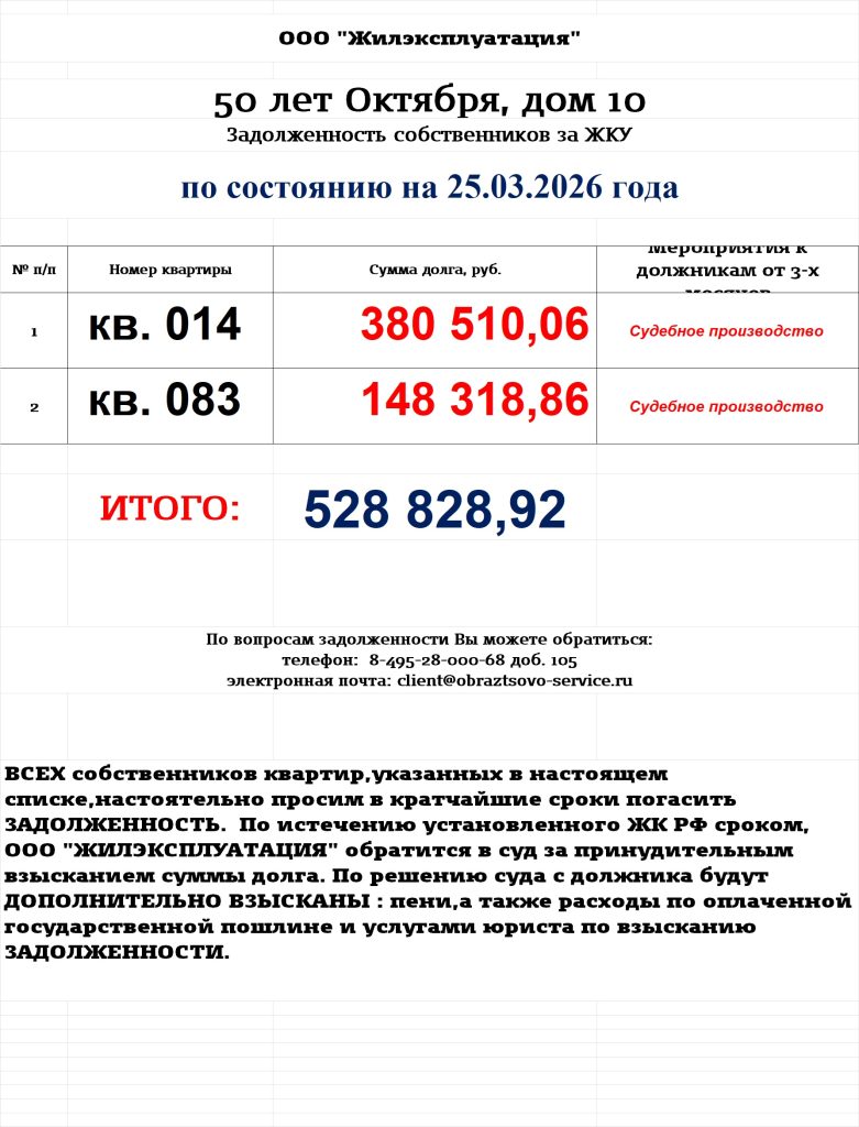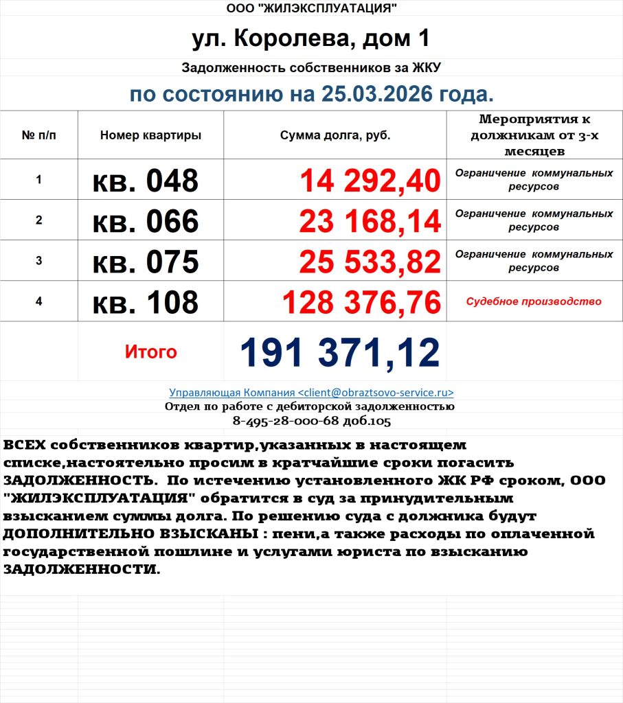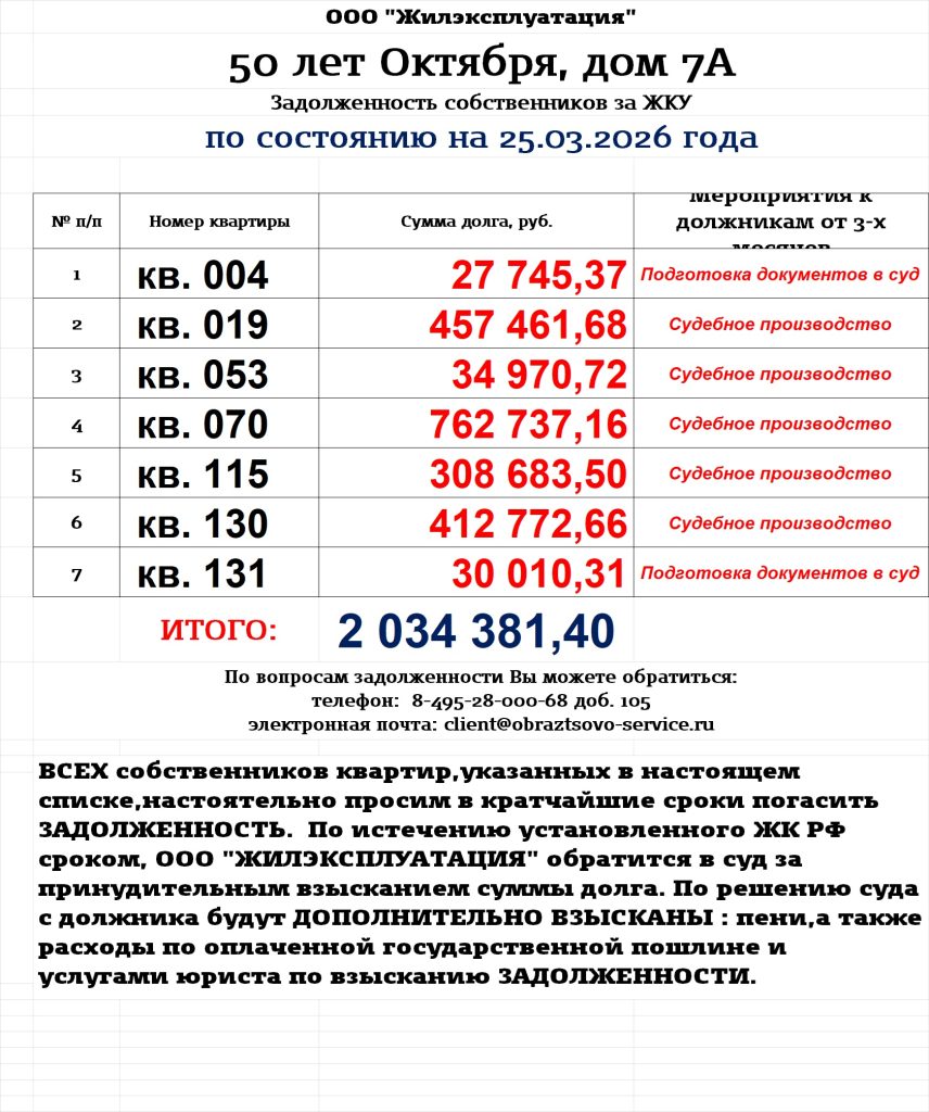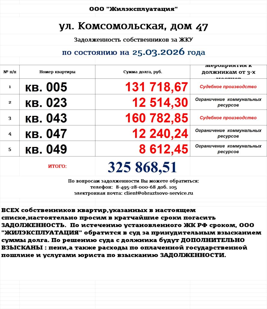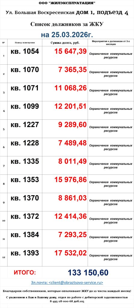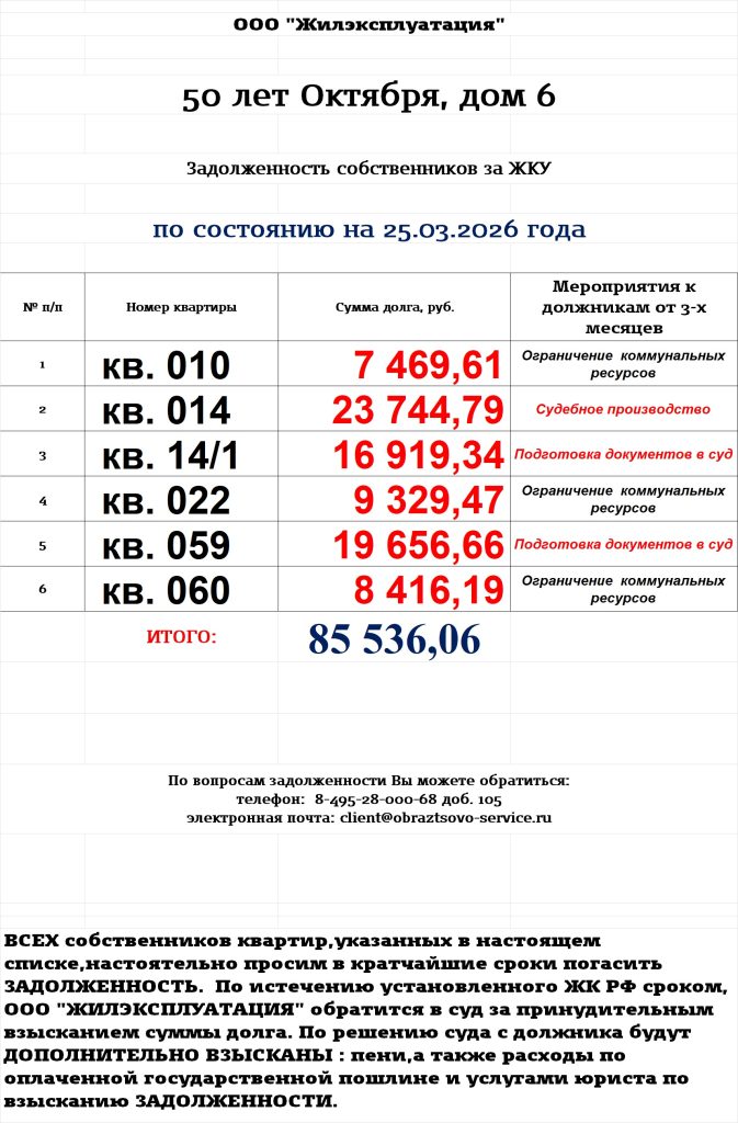 Список должников по коммунальным платежам ул. Жуковского, Волоколамское шоссе