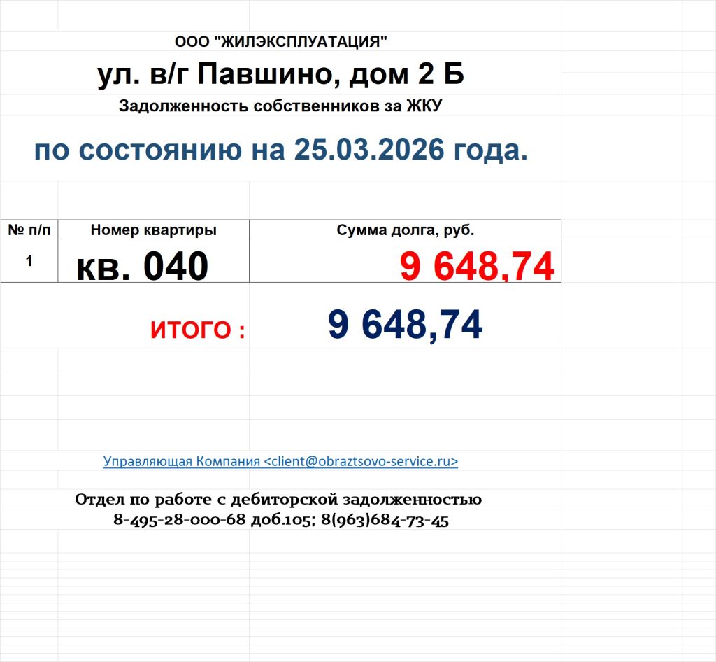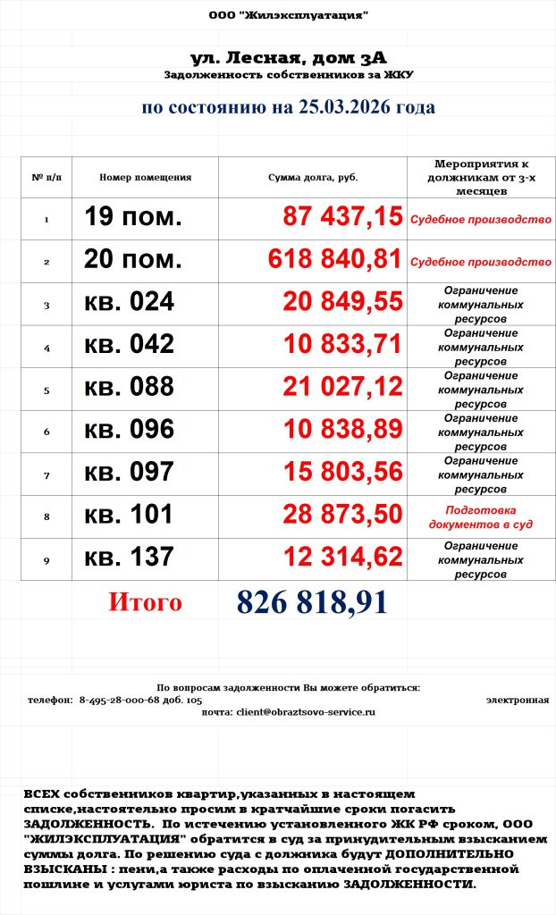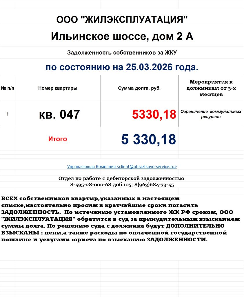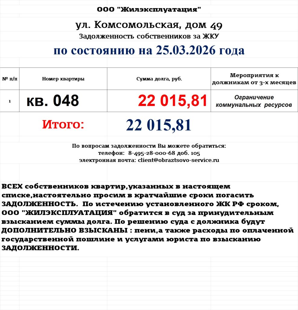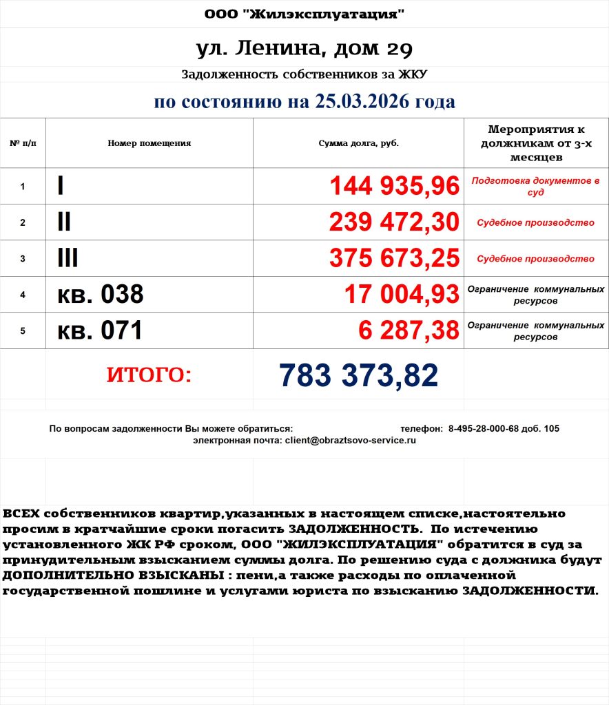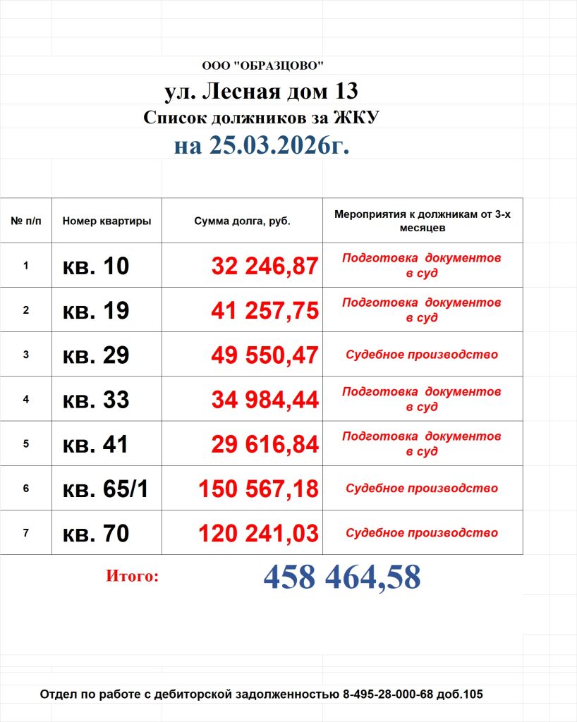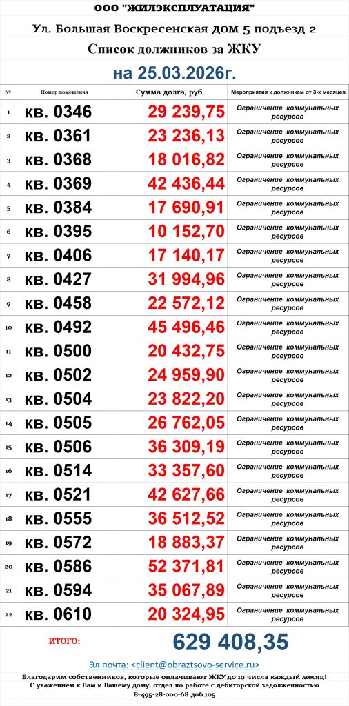 Список должников по коммунальным платежам ул. Жуковского, Волоколамское шоссе