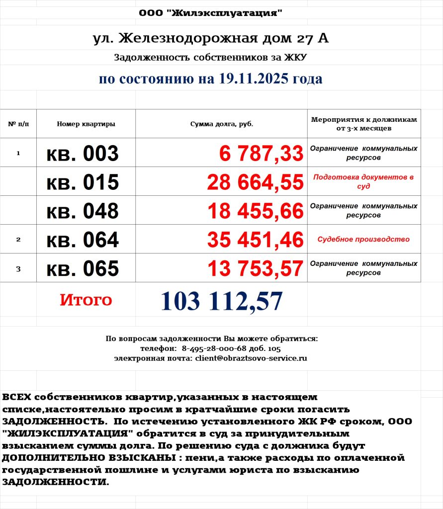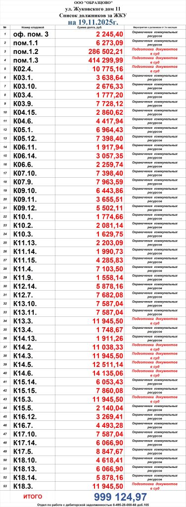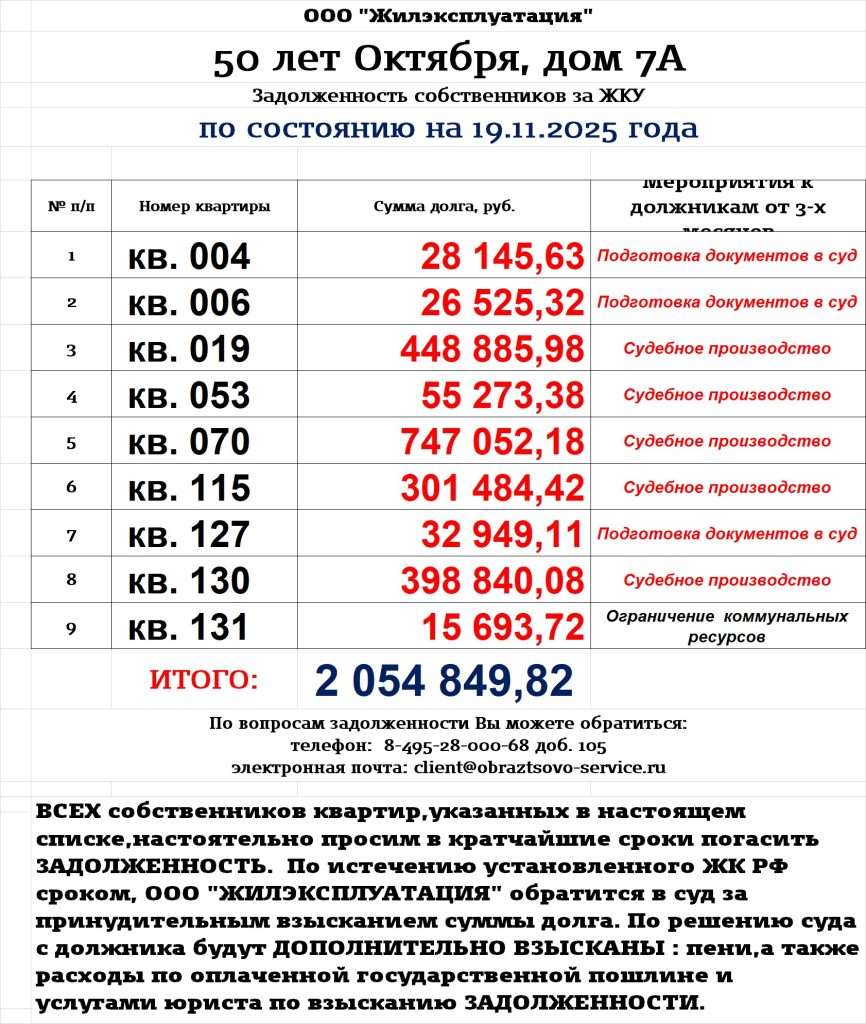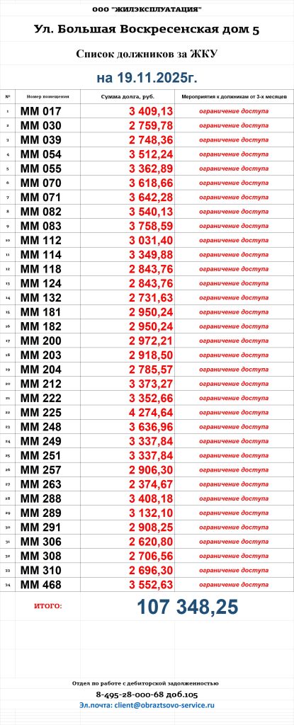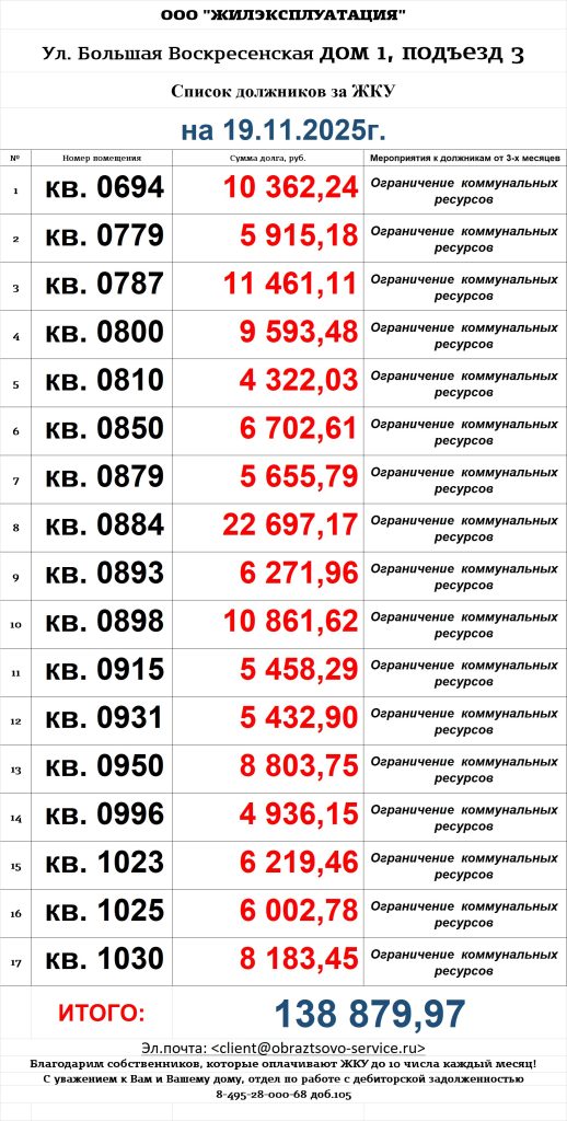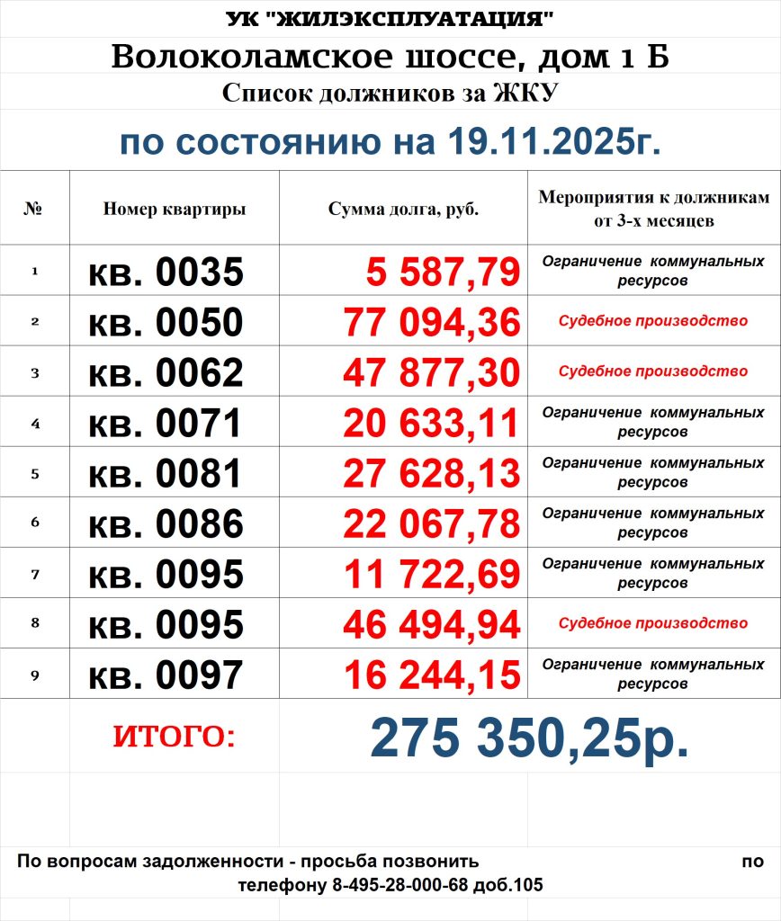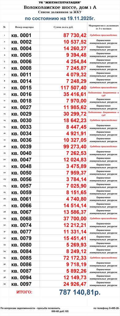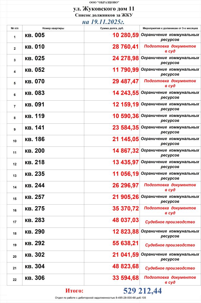 Список должников по коммунальным платежам ул. Жуковского, Волоколамское шоссе