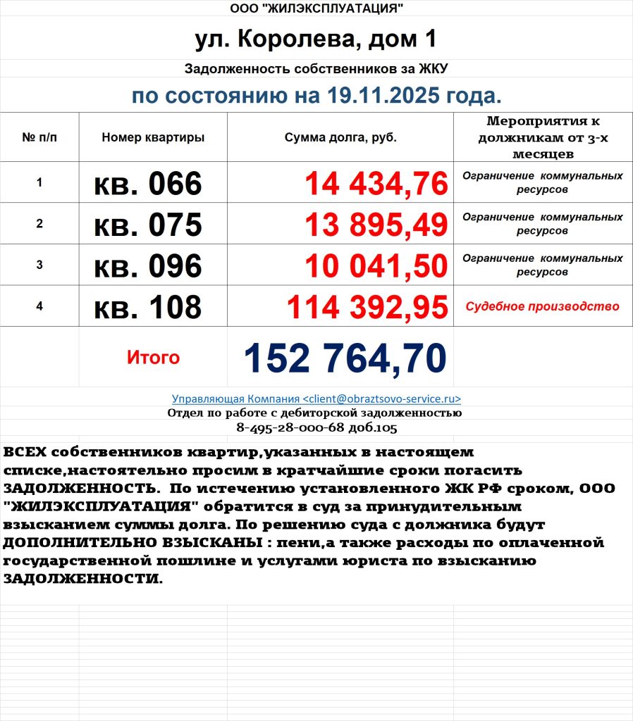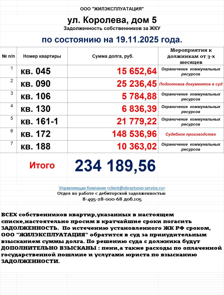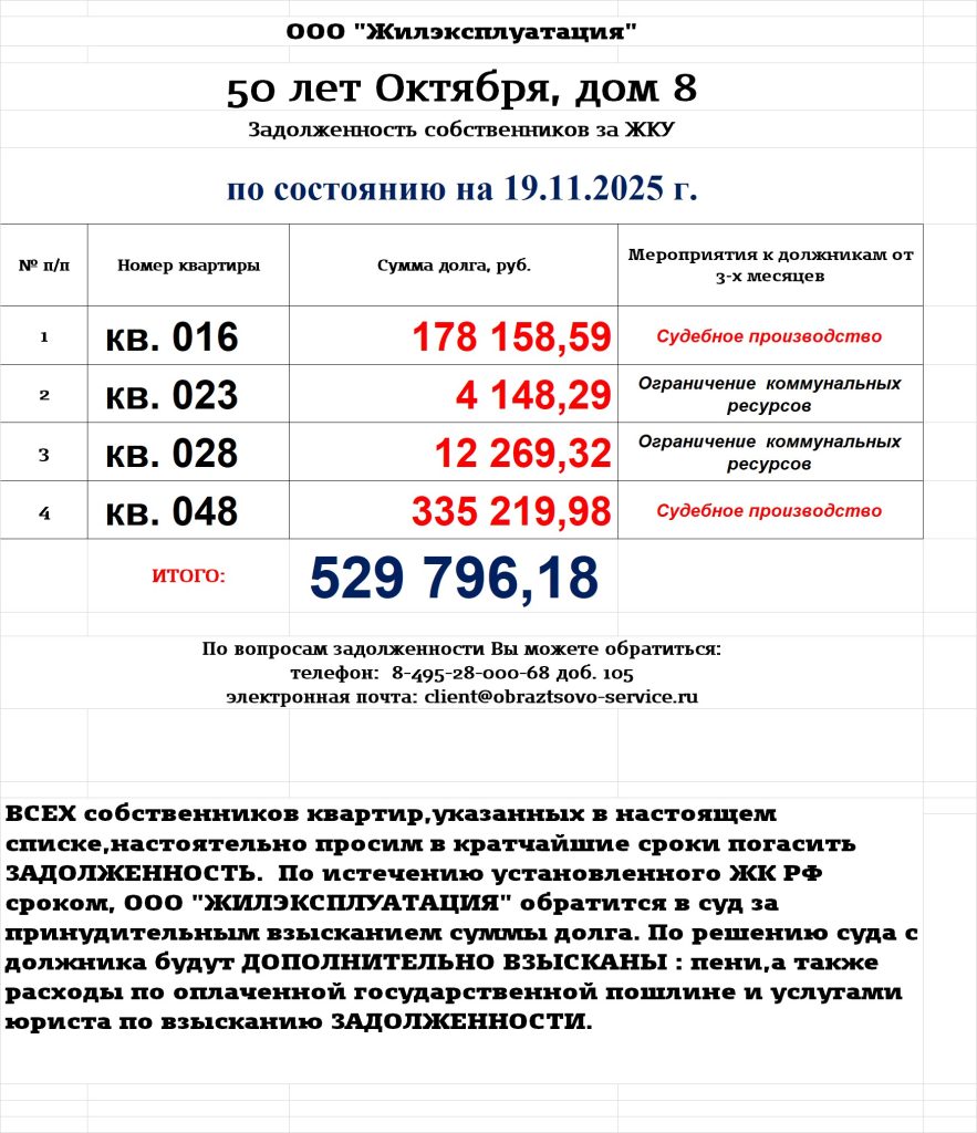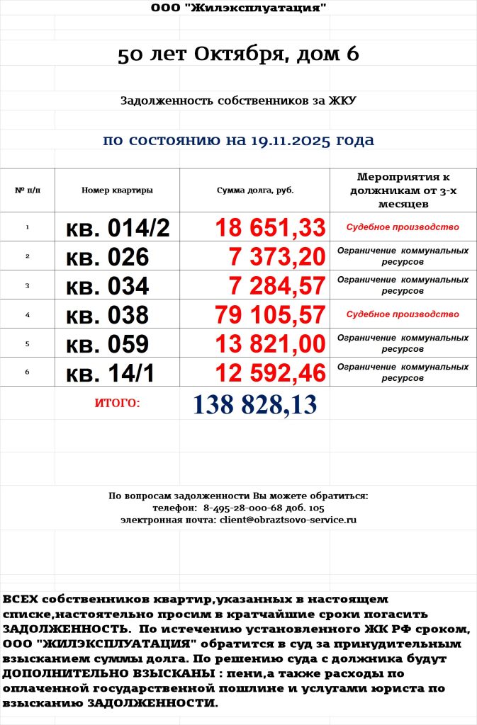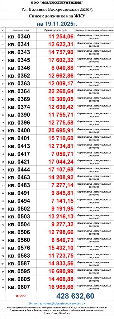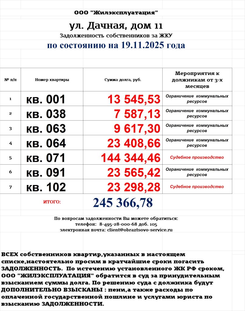 Список должников по коммунальным платежам ул. Жуковского, Волоколамское шоссе