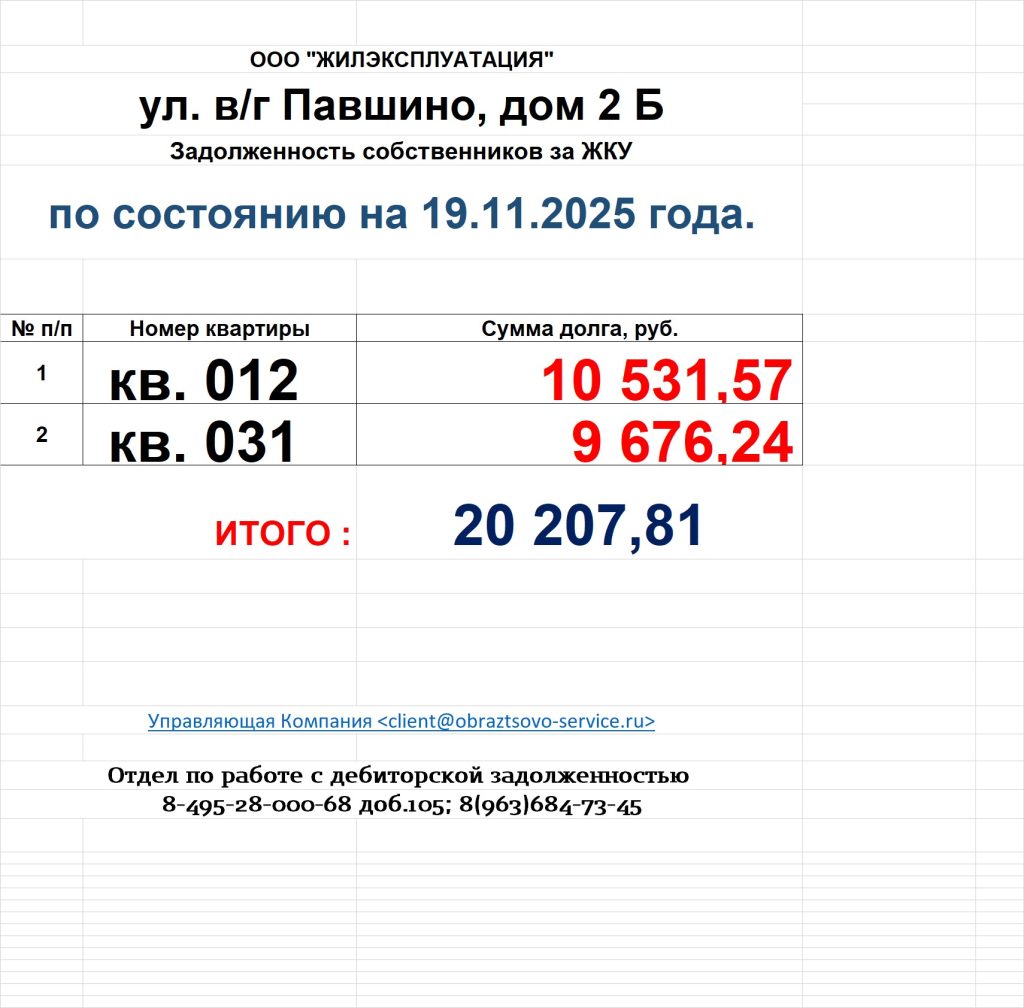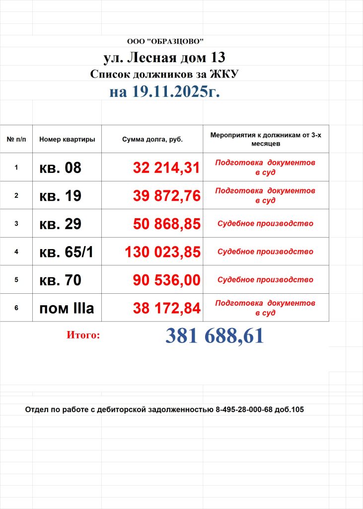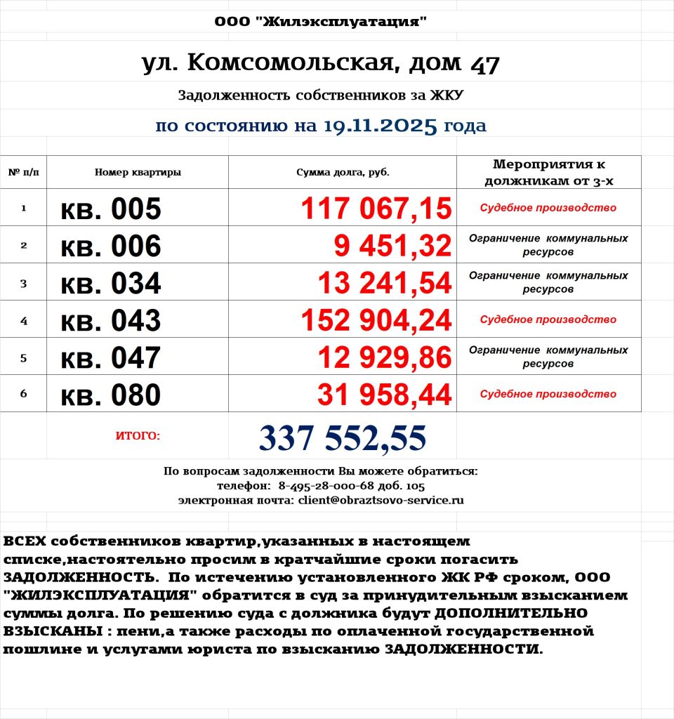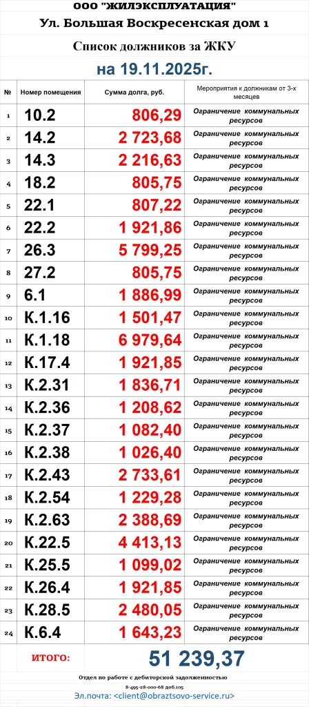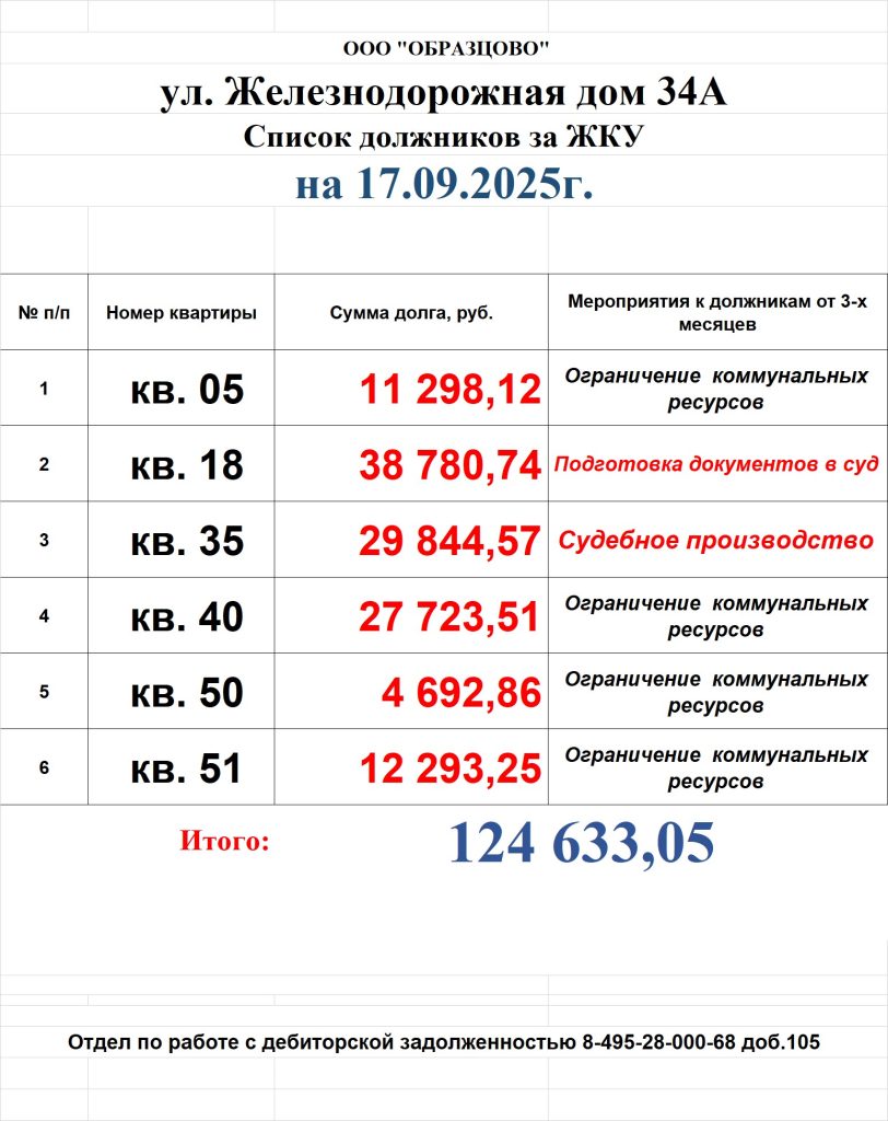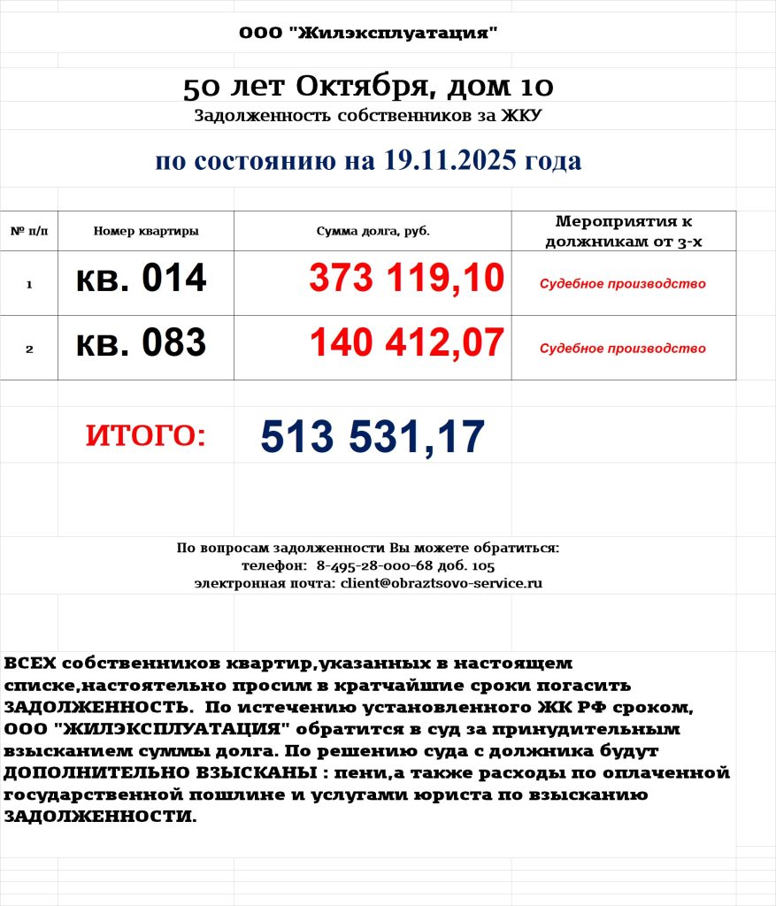 Список должников по коммунальным платежам ул. Жуковского, Волоколамское шоссе