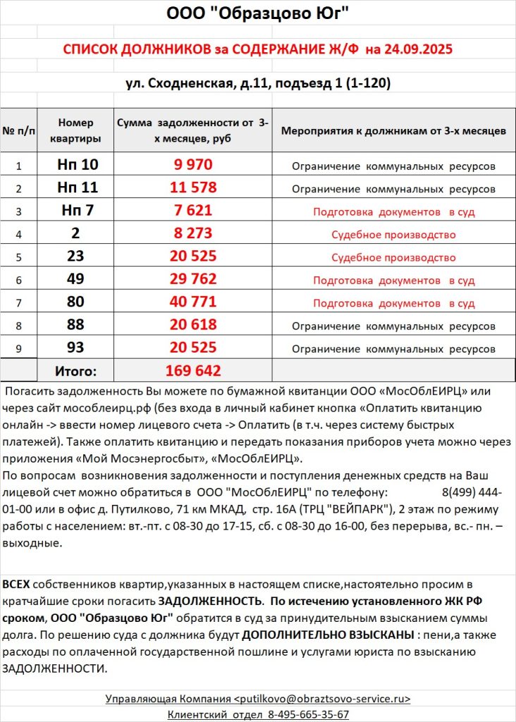 Список должников по коммунальным платежам ул. Сходненская, 11