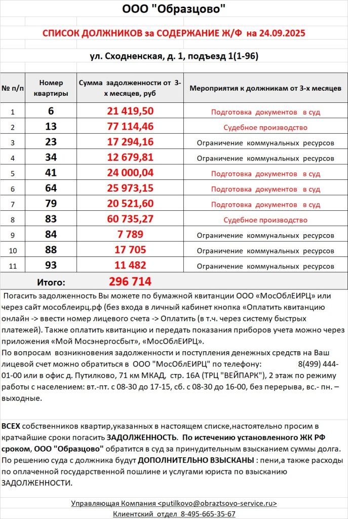 Список должников по коммунальным платежам ул. Сходненская, 1
