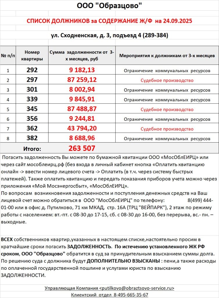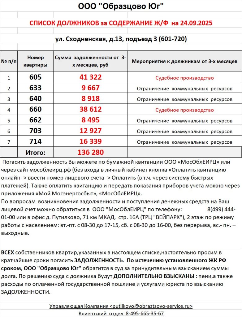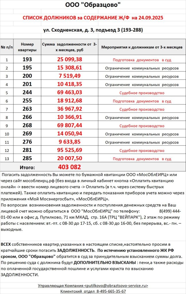 Список должников по коммунальным платежам ул. Сходненская, 3