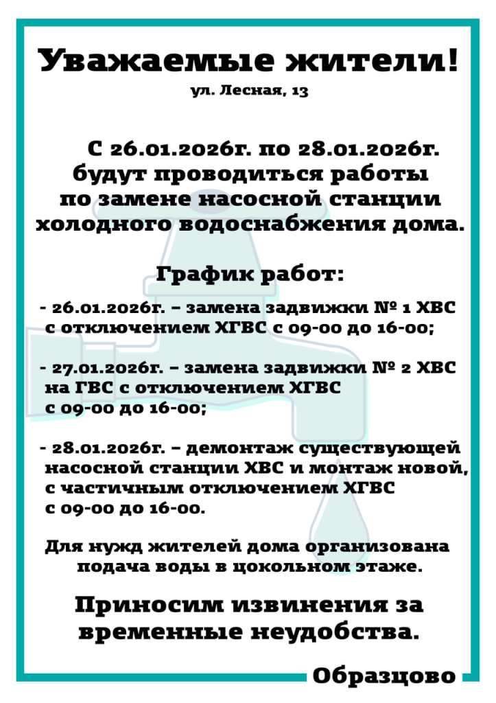 Уважаемые жители ул. Лесная, 13!